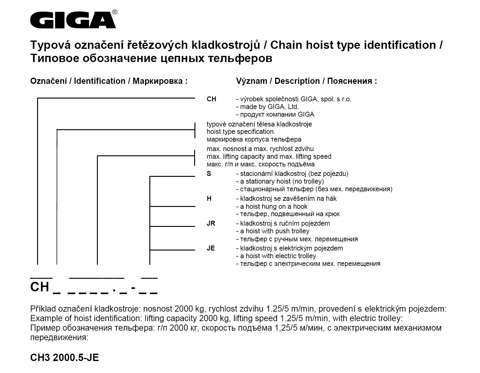 Typové označení řetězových kladkostrojů GIGA
